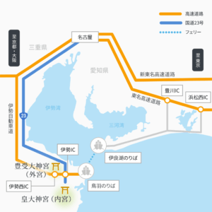 伊勢西IC からのアクセスは良好ですが、新嘗祭当日は交通規制・渋滞が予想されます。