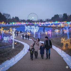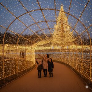 国営讃岐まんのう公園W.ファンタジーは、四国最大級の光の舞台。ご家族の冬の思い出を彩る、感動いっぱいの旅のハイライトです。