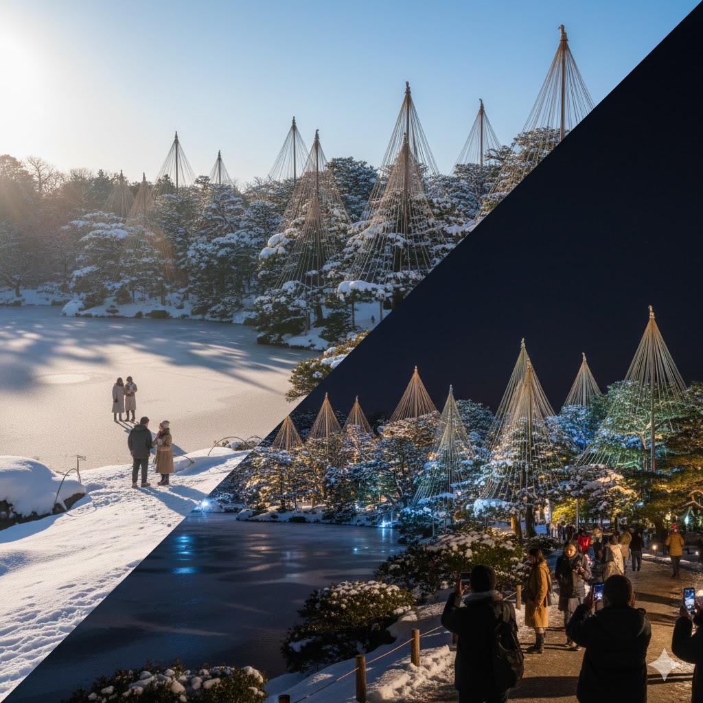 この時間帯こそ、雪化粧の兼六園を静かに楽しむための最大の裏ワザです。